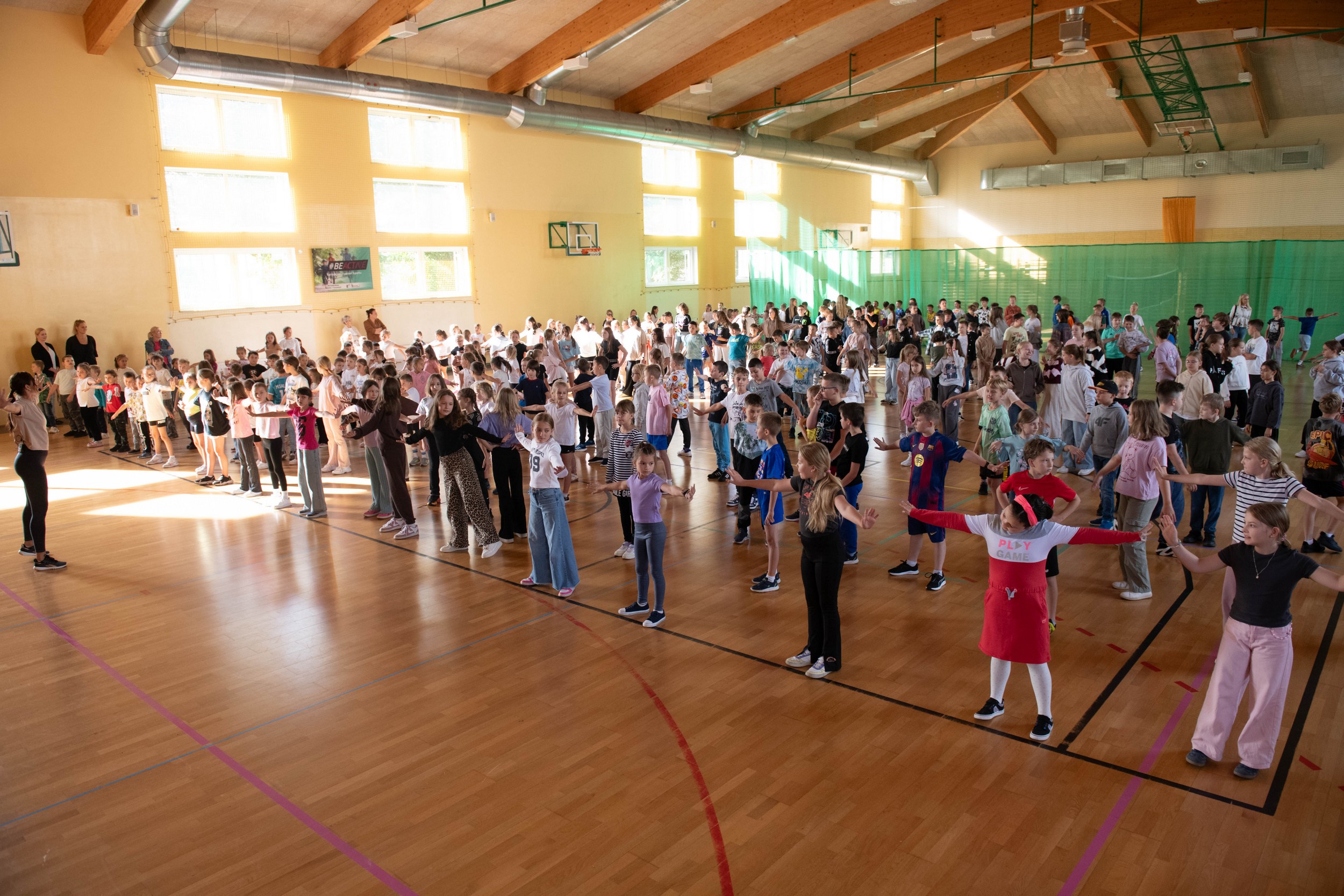 W piątek 26 września w ramach Europejskiego Tygodnia Sportu w naszej szkole odbyła się specjalna lekcja aerobiku zorganizowana przez Panią Nikole Rojek. W zajęciach wzięło udział ponad 350 uczniów z klas 1-5. Lekcja miała na celu promowanie aktywnego stylu życia, poprawę kondycji fizycznej oraz integrację uczniów. Zajęcia obejmowały rozgrzewkę, ćwiczenia aerobowe oraz zabawy taneczne. Lekcja aerobiku spotkała się z bardzo dobrym odbiorem wśród uczniów i nauczycieli Wielu uczniów wyraziło chęć uczestnictwa w podobnych aktywnościach w przyszłości.