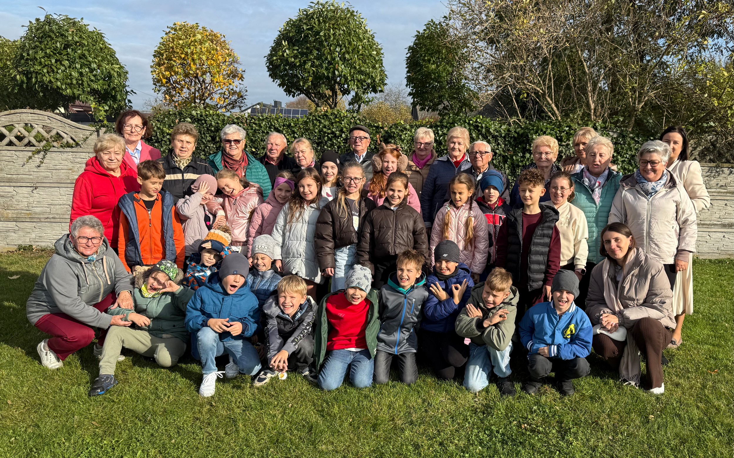 Po części artystycznej uczniowie wraz z seniorami uczestniczyli w zajęciach plastycznych, podczas których tworzyli piękne ozdobne butelki. Nie zabrakło też wspólnej zabawy na świeżym powietrzu – dzieci z zapałem grały w jesienne bingo, a całość zwieńczył pyszny poczęstunek. 🍪☕