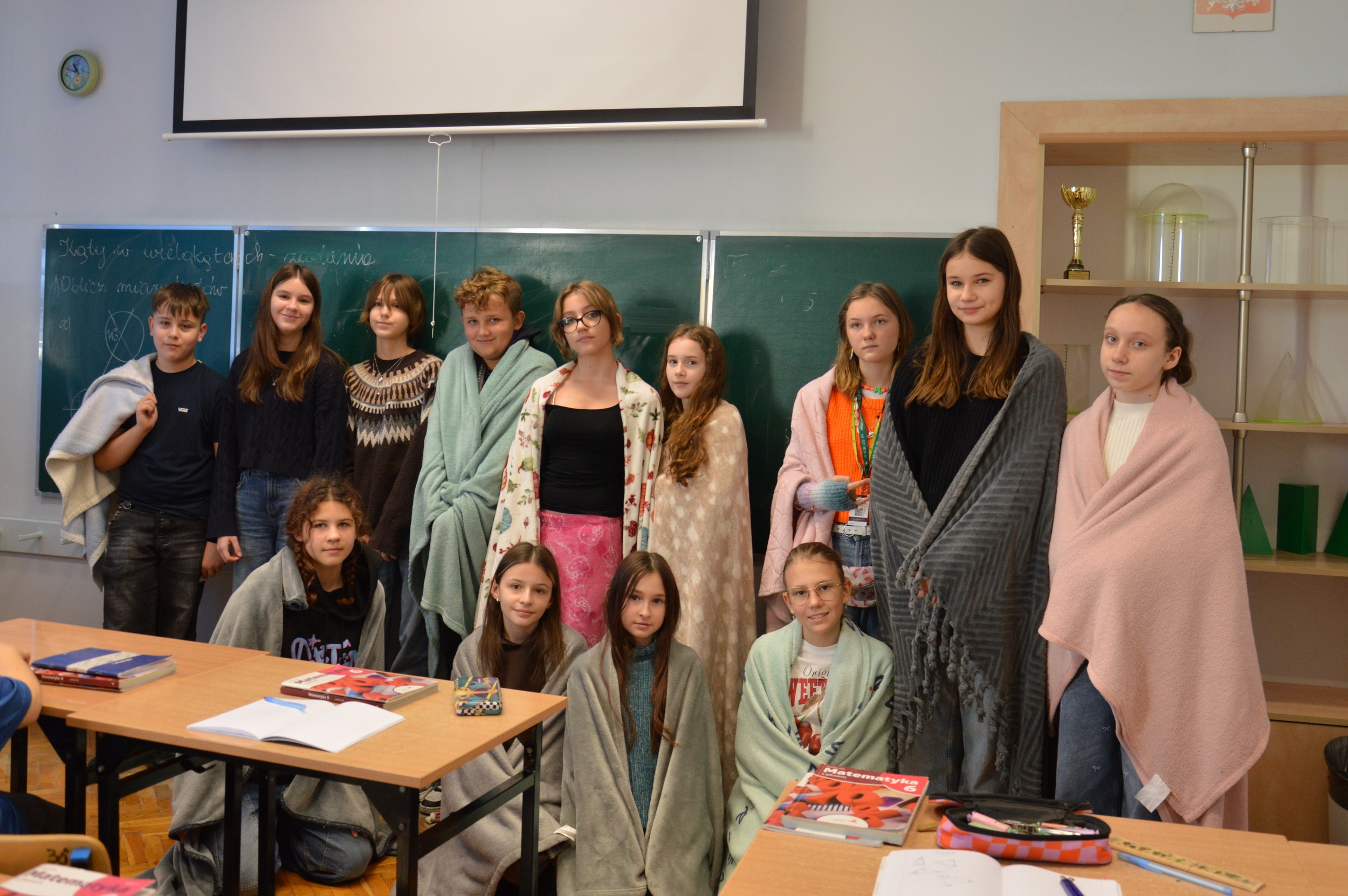 Uczniowie przyszli dziś do szkoły w sweterkach i z kocykami, a na miejscu czekała na Nich ciepła, rozgrzewająca i aromatyczna herbatka.
