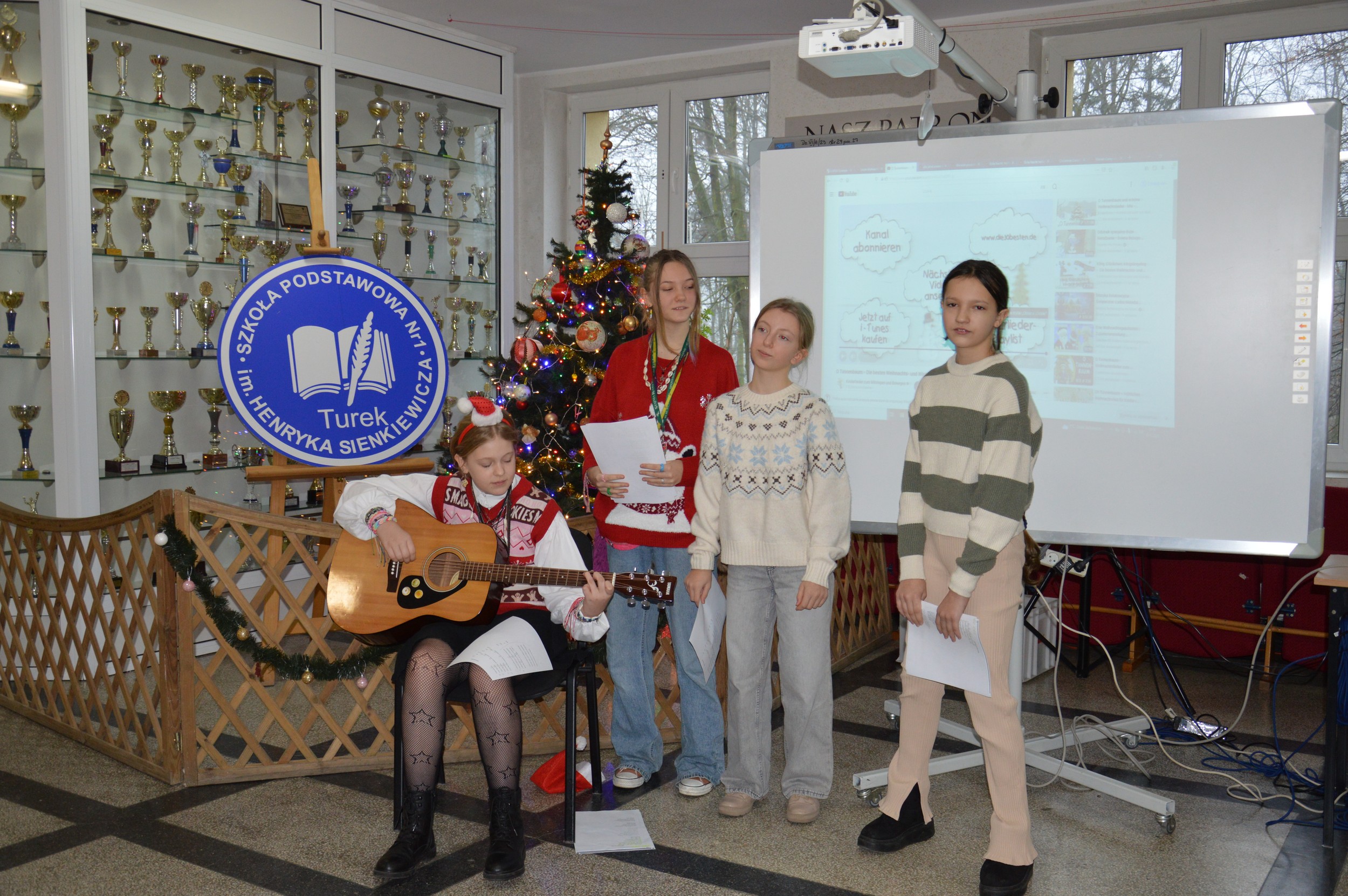 W miniony czwartek na szkolnym holu rozbrzmiewała muzyka w ramach wspólnego europejskiego kolędowania. Uczniowie prezentowali swoje umiejętności, grając na instrumentach oraz śpiewając kolędy i piosenki świąteczne w języku polskim, angielskim i niemieckim. Mogliśmy usłyszeć znane melodie w różnych językach i poznać świąteczne tradycje muzyczne. Występy umilały czas przerw i wprowadzały radosny nastrój, pozwalając poczuć klimat nadchodzących świąt.