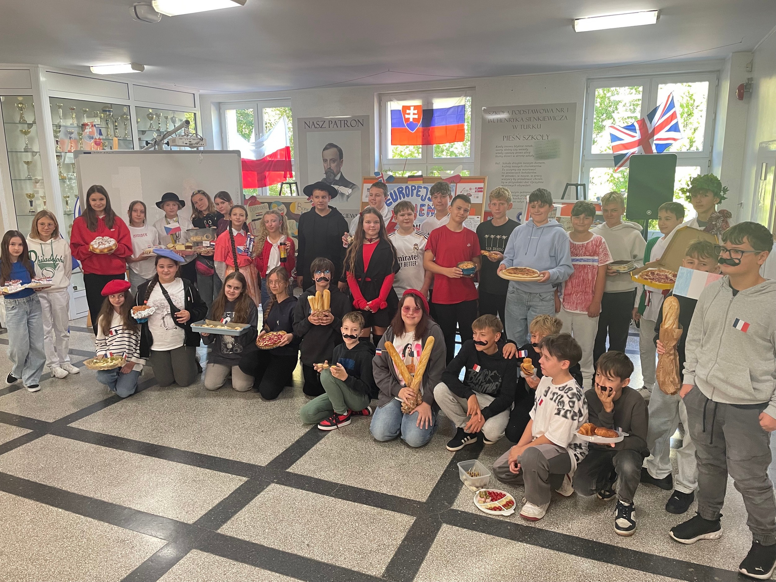 25 września w naszej szkole obchodziliśmy Europejski Dzień Języków Obcych. Każda klasa wylosowała dwa państwa europejskie, które miała za zadanie zaprezentować. Uczniowie przygotowali barwne stroje nawiązujące do tradycji i symboli narodowych oraz potrawy charakterystyczne dla danego kraju. Hol szkolny zamienił się tego dnia w prawdziwie europejską przestrzeń pełną barw i zapachów.