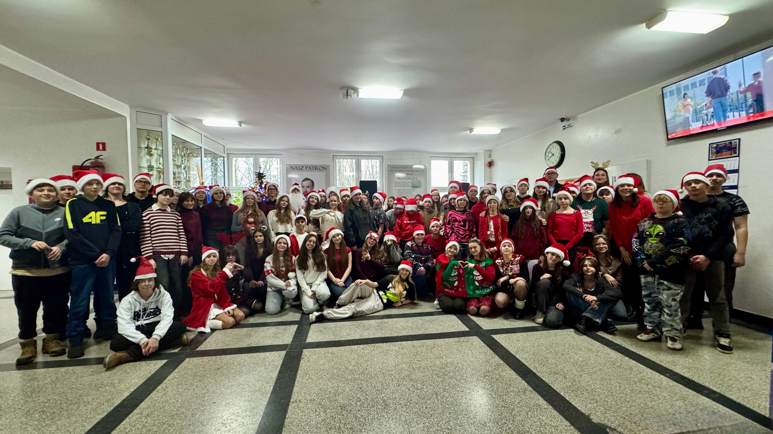 5 grudnia w naszej szkole panowała wyjątkowo radosna i świąteczna atmosfera. Już od rana korytarze zapełniły się uczniami ubranymi w czerwone czapki, świąteczne sweterki oraz stroje Mikołajów, śnieżynek, elfów i innych bożonarodzeniowych postaci.