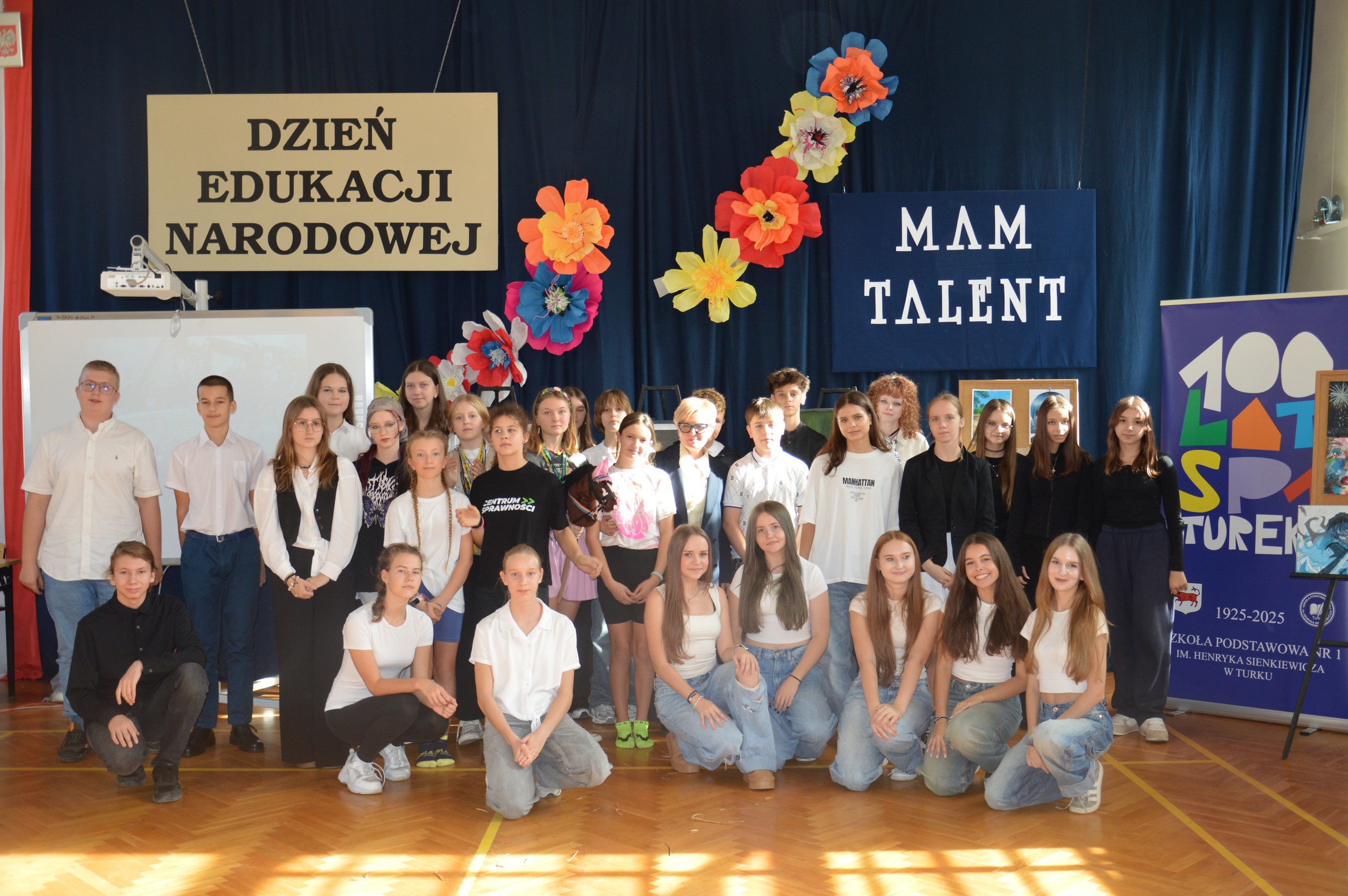 Z okazji Dnia Edukacji Narodowej w obu budynkach naszej szkoły odbyły się uroczyste apele, podczas których uczniowie zaprezentowali program artystyczny, składając w ten sposób wyrazy wdzięczności nauczycielom i wszystkim pracownikom szkoły za ich codzienny trud i zaangażowanie. Jednym z elementów obchodów był „Szkolny Mam Talent”, podczas którego uczniowie klas 6-8 mieli okazję zaprezentować swoje pasje i umiejętności – od śpiewu i tańca, po akrobatykę i jazdę na deskorolce. Występy uzdolnionych uczniów spotkały się z owacją publiczności. Samorząd Uczniowski przygotował z tej okazji specjalną niespodziankę. Wszystkim pracownikom szkoły złożono serdeczne życzenia oraz wręczono symboliczne upominki – eleganckie długopisy z napisem 100 lat SP1 Turek, nawiązujące do obchodzonego w tym roku jubileuszu placówki. To był wyjątkowy dzień, pełen wzruszeń, radości i wspólnego świętowania.
