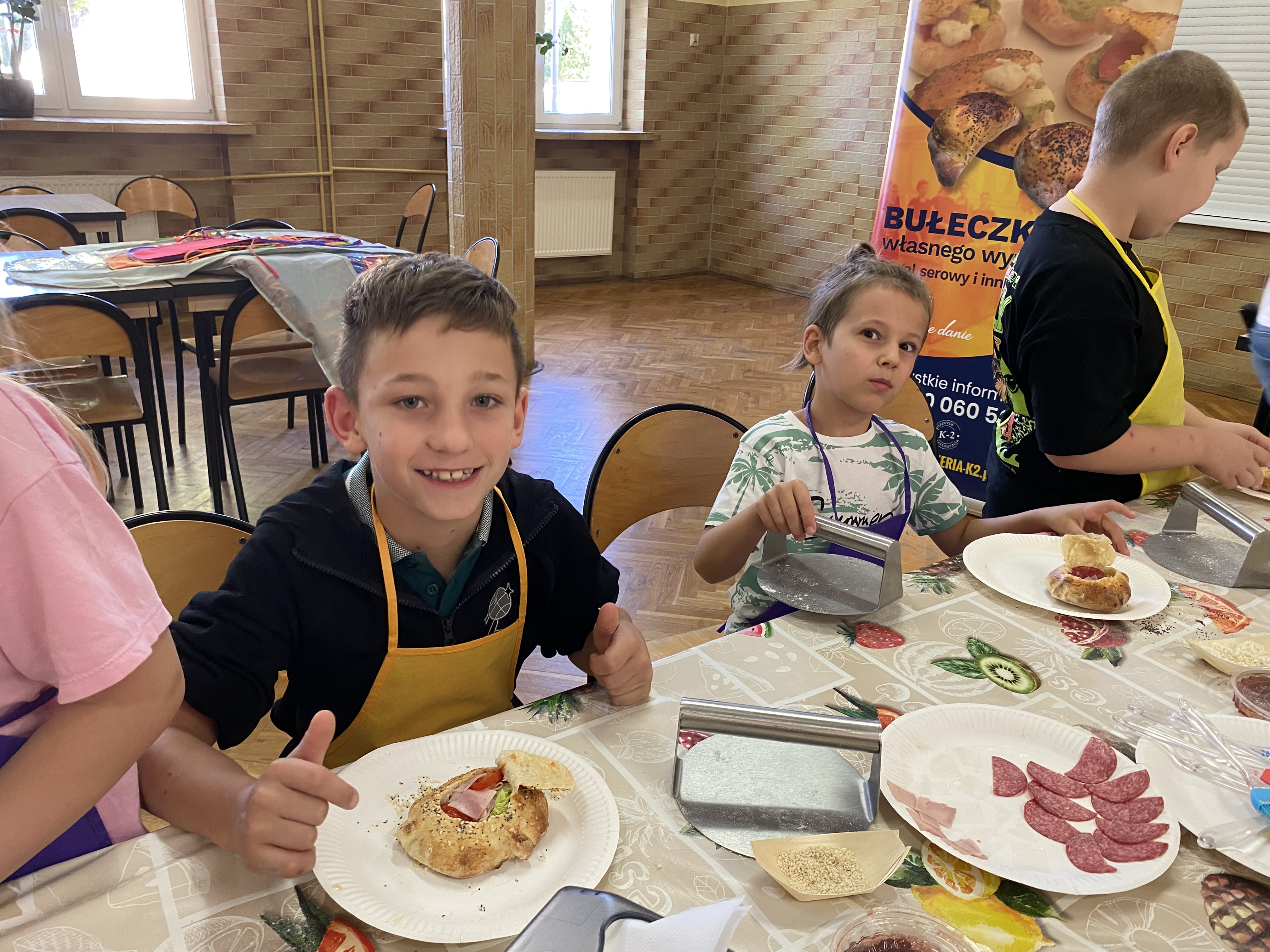 26 września 2025 roku w ramach obchodów Dnia Chłopca uczniowie klasy 2 b wzięli udział w warsztatach kulinarnych. Dzieci miały okazję zapoznać się z pracą kucharza. Po zapoznaniu się z techniką wykonywania różnorodnych bułek, wcieliły się w rolę kucharzy i przyrządziły swoje własne wypieki pod czujnym okiem szefa kuchni. Każdy z uczestników warsztatów otrzymał przygotowaną wcześniej kulkę ciasta, przeróżne składniki i mógł skomponować swoją, wyjątkową bułkę, która wyglądała cudownie, a jeszcze lepiej smakowała.